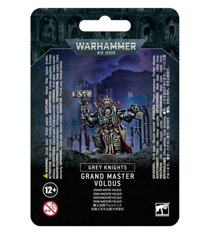 Questo kit multicomponente di plastica contiene i pezzi necessari per assemblare il Grand Master Voldus, Custode del Librarius. Questa miniatura è piena di dettagli, proprio come si addice ad un Grand Master del suo potere e reputazione. La sua armatura Terminator mostra numerose iscrizioni sacre, oltre a teschi, catene e tomi magici. Il suo leggendario martello, alto quanto lui, è pieno di sigilli di purezza e cablaggi che riflettono la sua funzione di condotto per le energie psichiche, mentre sul braccio sinistro ha un requiem d'assalto montato sul polso.