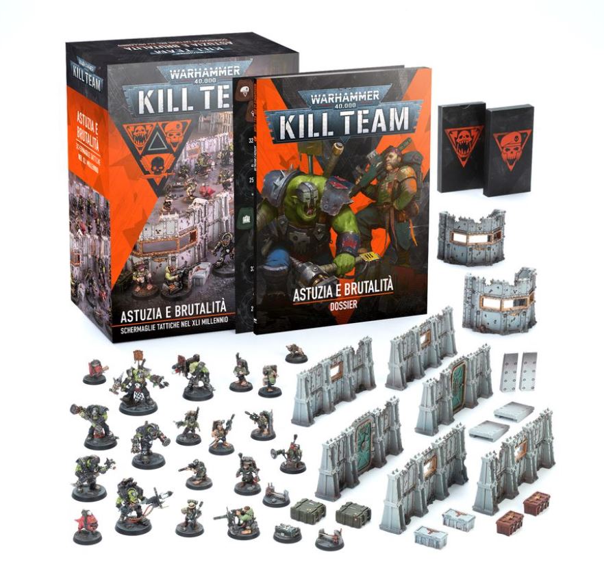- Dossier Astuzia e Brutalità in formato brossurato di 72 pagine: tutto il background, le illustrazioni e le regole per i due kill team inclusi nella scatola; in più una panoramica del pianeta Volkus, degli Isolati Sottocanna che circondano il Formicaio Fissilicus e dei kill team che si scontrano tra le rovine e le fortificazioni.