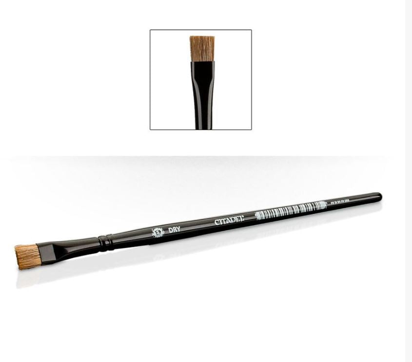 Questo pennello medio (M Dry) è composto da una mescolanza di setole di bue e sintetiche per una maggiore rigidità e durevolezza. Il profilo piatto consente di ottenere una copertura consistente sulle aree in rilievo, dunque è l'ideale per la tecnica del pennello asciutto!
