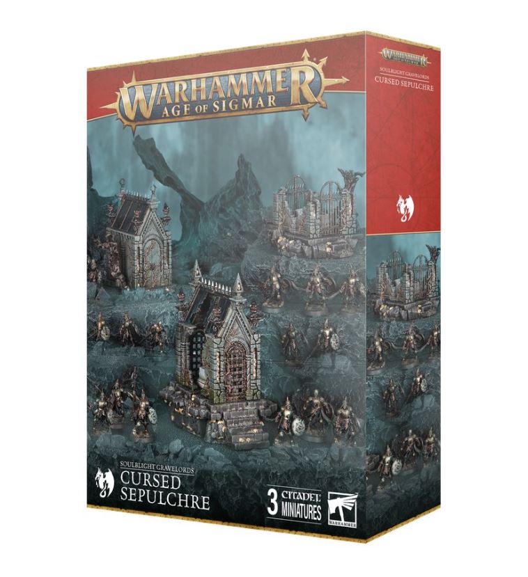 Questo kit multicomponente di plastica ti consente di assemblare tre elementi di terreno di Fazione che costituiscono un Sepolcro Maledetto, un fulcro di energia necromantica per le tue armate dei Signori della Tomba Malanima nelle partite a Warhammer Age of Sigmar. Queste strutture funeree offrono dei vantaggi alla tua forza di nonmorti, rinforzando gli incantesimi di evocazione e guarendo se stesse quando viene versato sangue sul terreno sconsacrato.