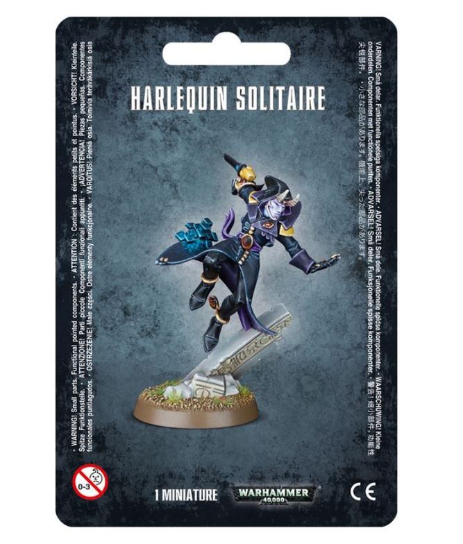 Con questo kit multicomponente di plastica puoi assemblare un Solitario, un crudele Arlecchino per la tua armata degli Aeldari di Warhammer 40,000. Il Solitario saetta sul campo come una forma indistinta ed è perfetto per fare a pezzi in mischia le unità e i personaggi del nemico. il kit permette inoltre di aggiungere un effetto di campo olografico alla giubba del Solitario.
