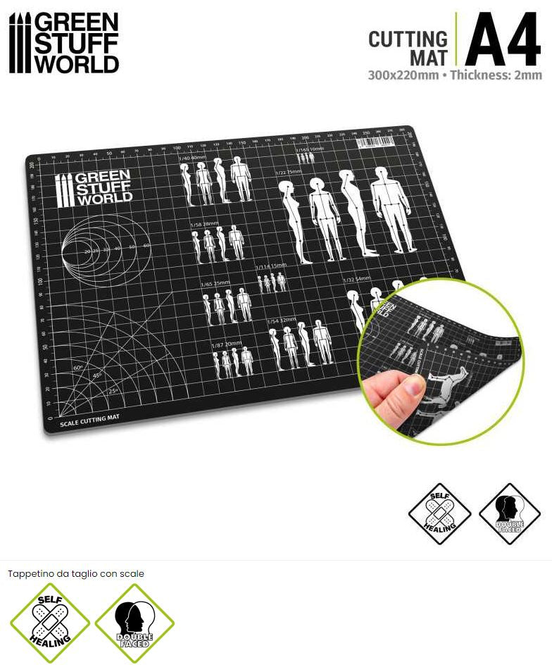 Sul tappetino sono stampate le linee guida delle scale più comuni, che ti permetteranno di creare armature per scolpire miniature sia da uomo che da donna. Troverai anche le stesse scale e linee guida per creare armature per cavalli e destrieri da guerra.