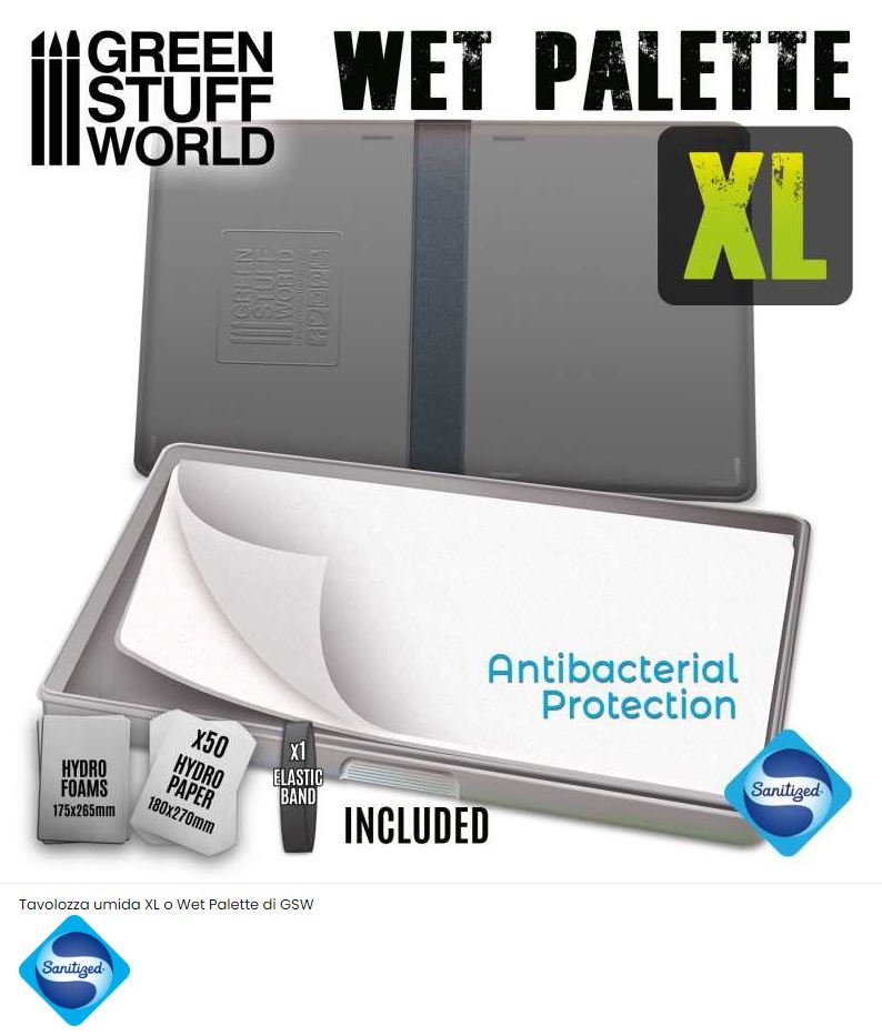 Carta solforata semipermeabile con grammatura ad alta resistenza e finitura semitrasparente. Permette l’assorbimento dell’acqua senza lasciare passare la vernice. Ha angoli dritti per adattarsi bene alla tavolozza bagnata GSW.