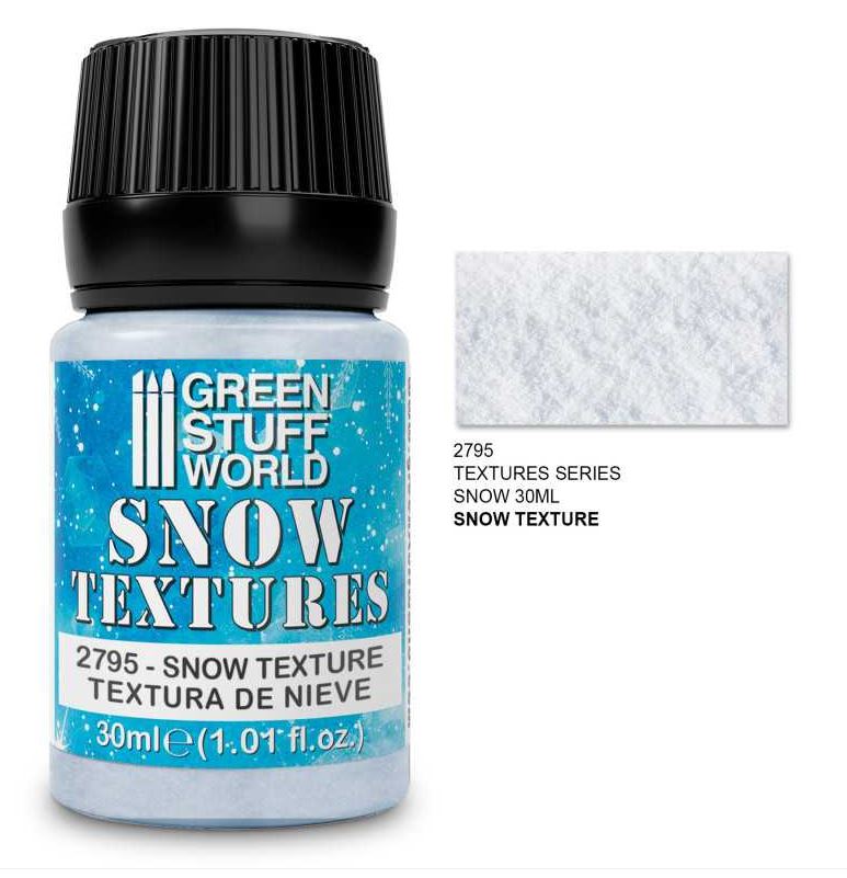 Texture acrilica per effetti di neve, sviluppata per creare un realismo estremo. Imita il luccichio e il colore bianco puro delle superfici innevate, cosí come la limpidezza della neve. Standere strati dello spessore desiderato. Si può diluire con acqua o con un diluente acrilico per modificarne la fluidità.